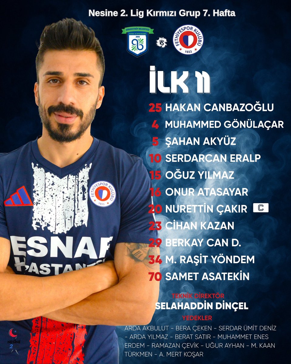 Fethiyespor teknik heyeti, Arnavutköy deplasmanı için hazırladığı taktik düzen içerisinde hangi futbolcuların sahaya çıkacağını netleştirdi. Açıklanan kadroda, takımın tecrübeli ve genç oyuncularına yer verildiği görülüyor.