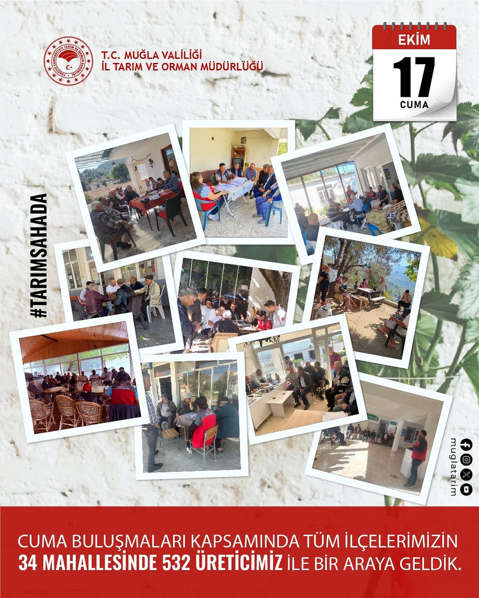 Muğla Tarım ve Orman Müdürlüğü ekipleri, il genelinde üreticilerle buluşarak desteklemeler ve üretim planlaması hakkında önemli bilgiler paylaştı. Gerçekleştirilen saha çalışmaları kapsamında 13 ilçeye bağlı 34 mahallede 532 üreticiye ulaşıldı.