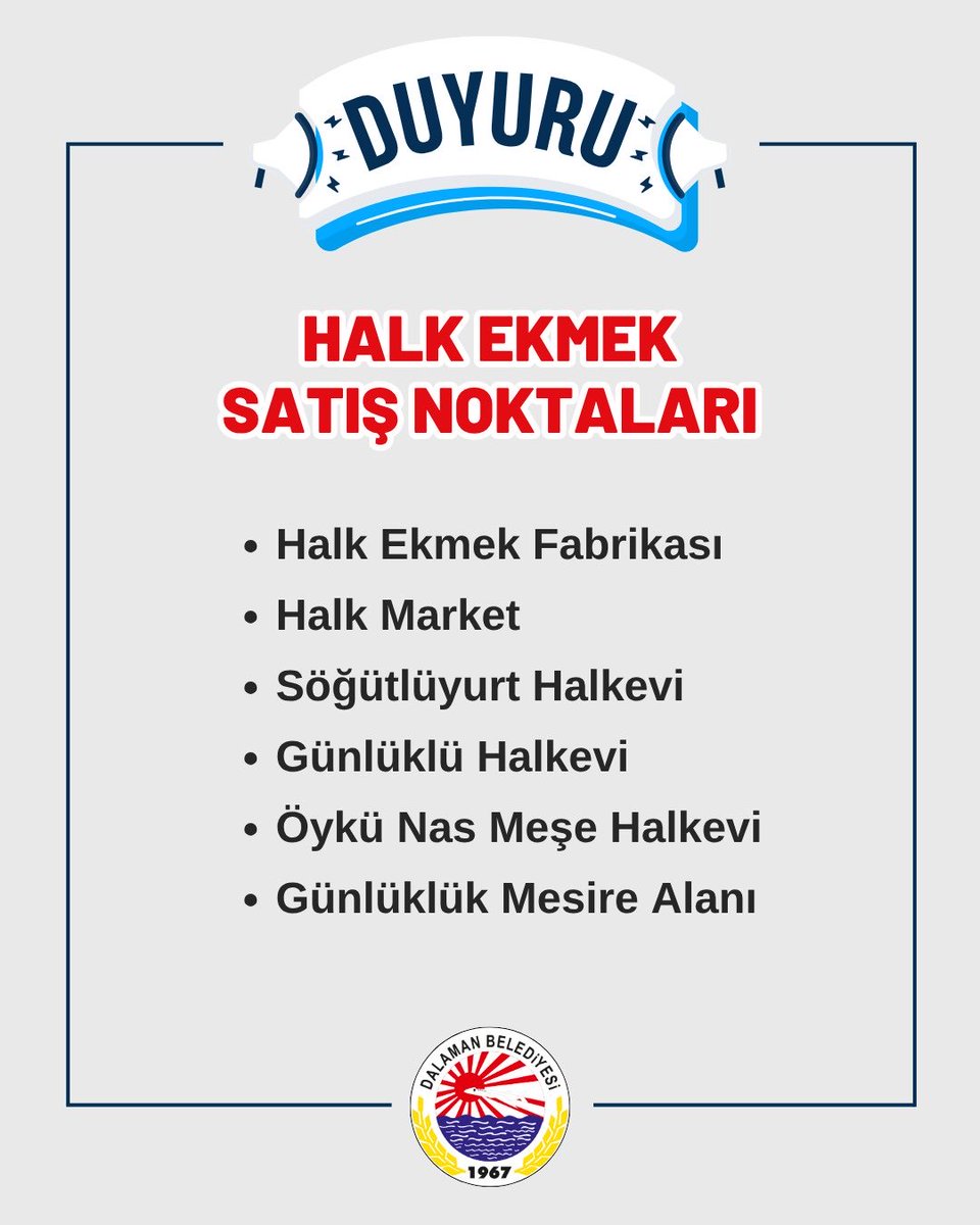Dalamanlılar taze fırın ekmeğine aşağıdaki satış noktalarından kolayca ulaşabilir: