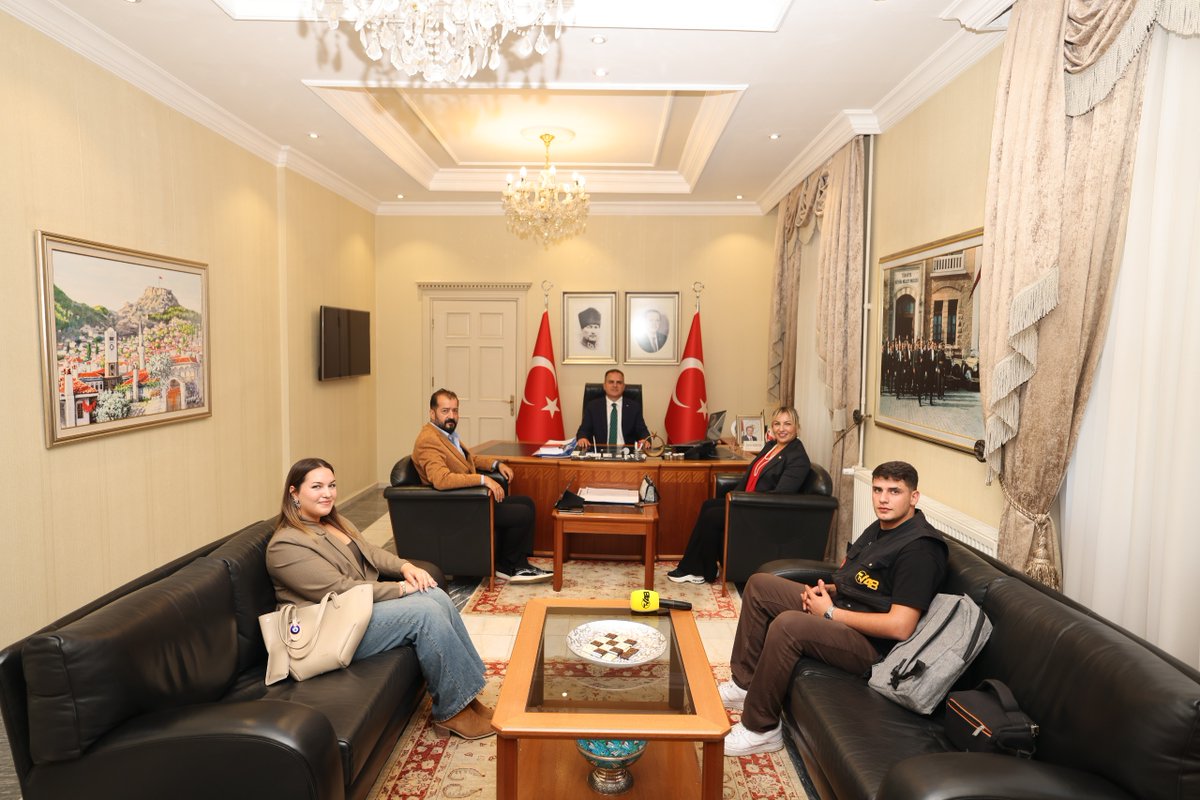 Ziyarete, Tv48 Yönetim Kurulu Başkanı Zahide Kuş'un yanı sıra, haber spikeri Ecem Kiriş, koordinatör Mesut Kocakaya ve kameraman Sefa Şam katıldı. Görüşmede, Muğla'nın güncel meseleleri ve medya