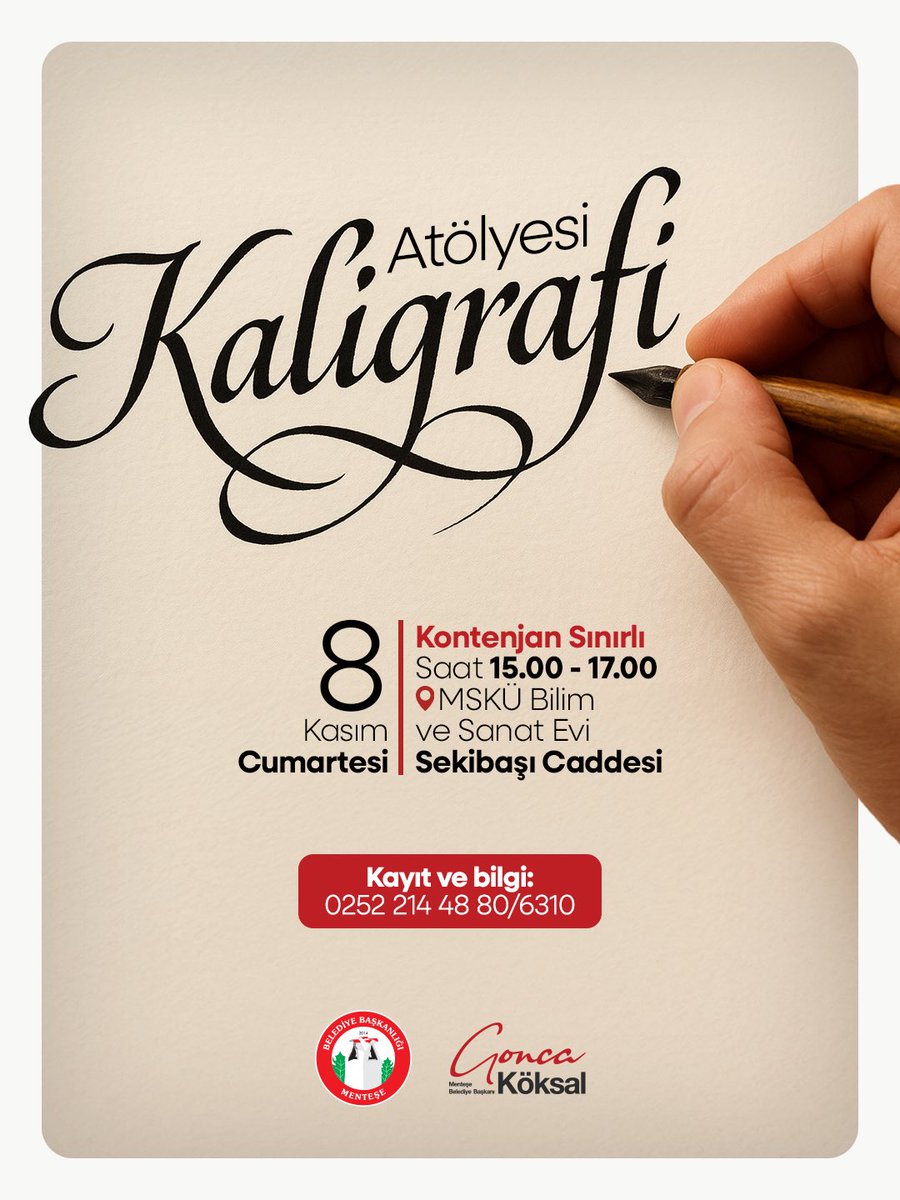 Menteşe Belediyesi, yetişkinler için sanat ve kişisel gelişim etkinliklerine bir yenisini daha ekliyor. Sanatın en zarif ifadelerinden biri olan kaligrafi sanatı, düzenlenecek özel bir atölye çalışması ile meraklılarıyla buluşacak.